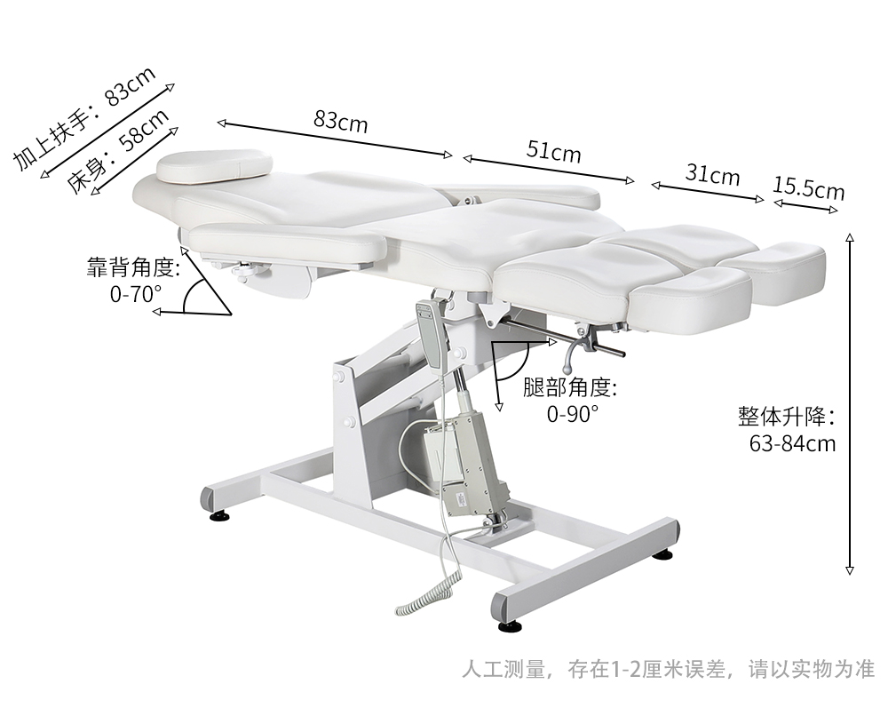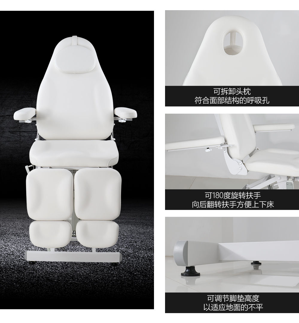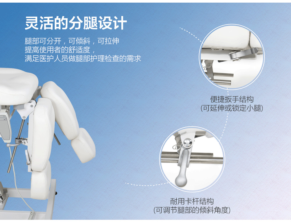 腿部角度:0°~90°,可放平或向上彎折,滿足腿部放松、體位固定等需求